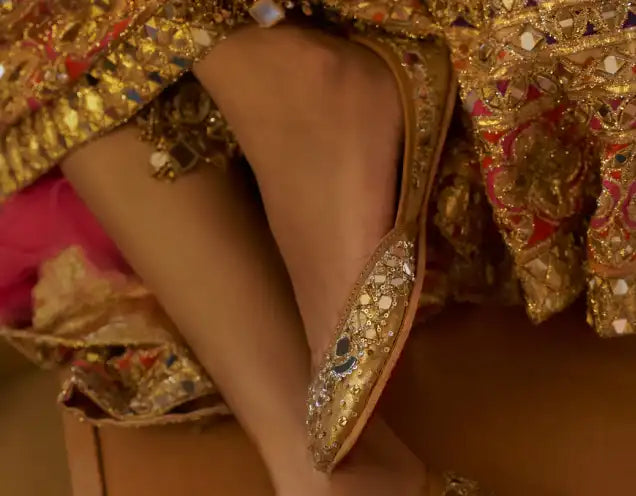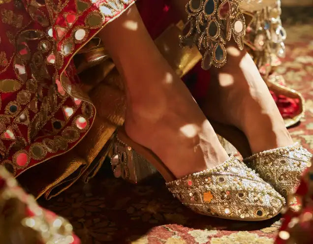 Indulge in the exquisite artistry of handcrafted designer juttis at NEEDLEDUST. Our collection showcases a blend of traditional and modern designs, meticulously crafted with premium materials. Each jutti is adorned with intricate embroidery and timeless motifs, celebrating India's rich cultural heritage. Elevate your ethnic ensemble with these premium juttis that reflect unparalleled craftsmanship and style.