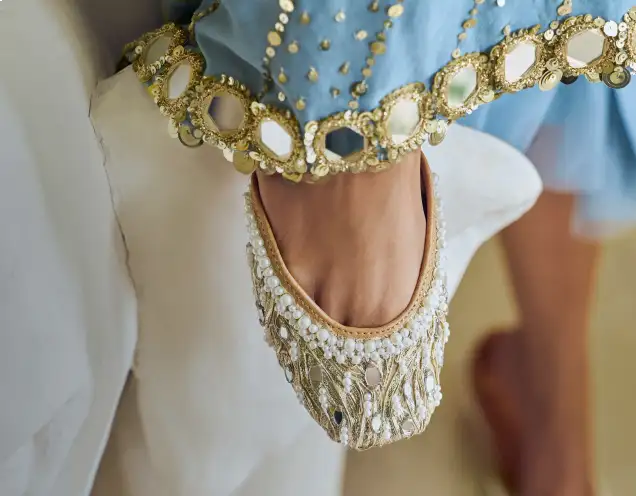 Indulge in the exquisite artistry of handcrafted designer juttis at Needledust. Our collection showcases a blend of traditional and modern designs, meticulously crafted with premium materials. Each jutti is adorned with intricate embroidery and timeless motifs, celebrating India's rich cultural heritage. Elevate your ethnic ensemble with these premium juttis that reflect unparalleled craftsmanship and style.
