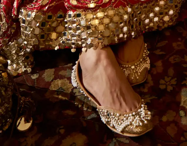Indulge in the exquisite artistry of handcrafted designer juttis at NEEDLEDUST. Our collection showcases a blend of traditional and modern designs, meticulously crafted with premium materials. Each jutti is adorned with intricate embroidery and timeless motifs, celebrating India's rich cultural heritage. Elevate your ethnic ensemble with these premium juttis that reflect unparalleled craftsmanship and style.