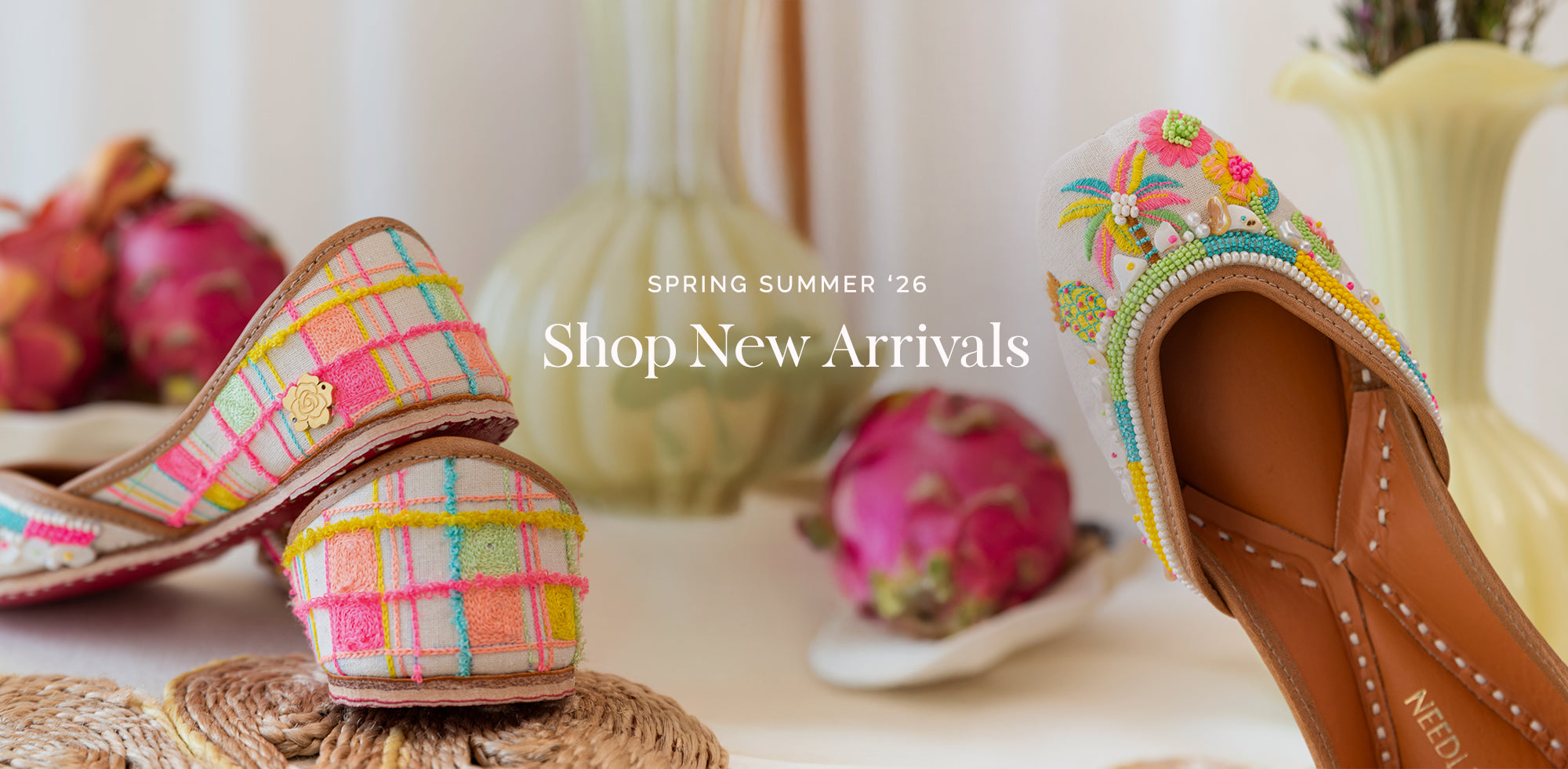 Welcome to NEEDLEDUST, where handcrafted excellence meets India's finest footwear. Discover a captivating array of women's ethnic juttis, heels, mules, Kolhapur, and purses, meticulously crafted with premium materials and traditional craftsmanship. Embrace ethnic elegance with our exquisite designs, featuring intricate embroidery, luxurious fabrics, and timeless motifs celebrating India's rich heritage. Indulge in the allure of premium handcrafted footwear and accessories that celebrate tradition while embracing modern style. Whether it's a timeless pair of kolhapuris or an intricately embroidered purse, our collection promises to elevate your wardrobe and evoke a sense of pride in India's artisanal heritage. Explore our range of men's and kids' juttis, each reflecting the same level of craftsmanship and attention to detail. At NEEDLEDUST, we take pride in creating more than just shoes; we create pieces of art that tell a story of tradition and passion. Step into a world where every step is a celebration of craftsmanship and culture. Welcome to NEEDLEDUST, your destination for India's finest handcrafted footwear.
