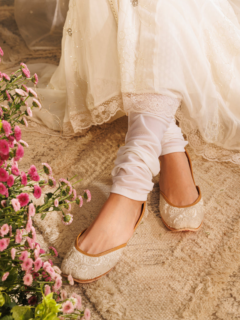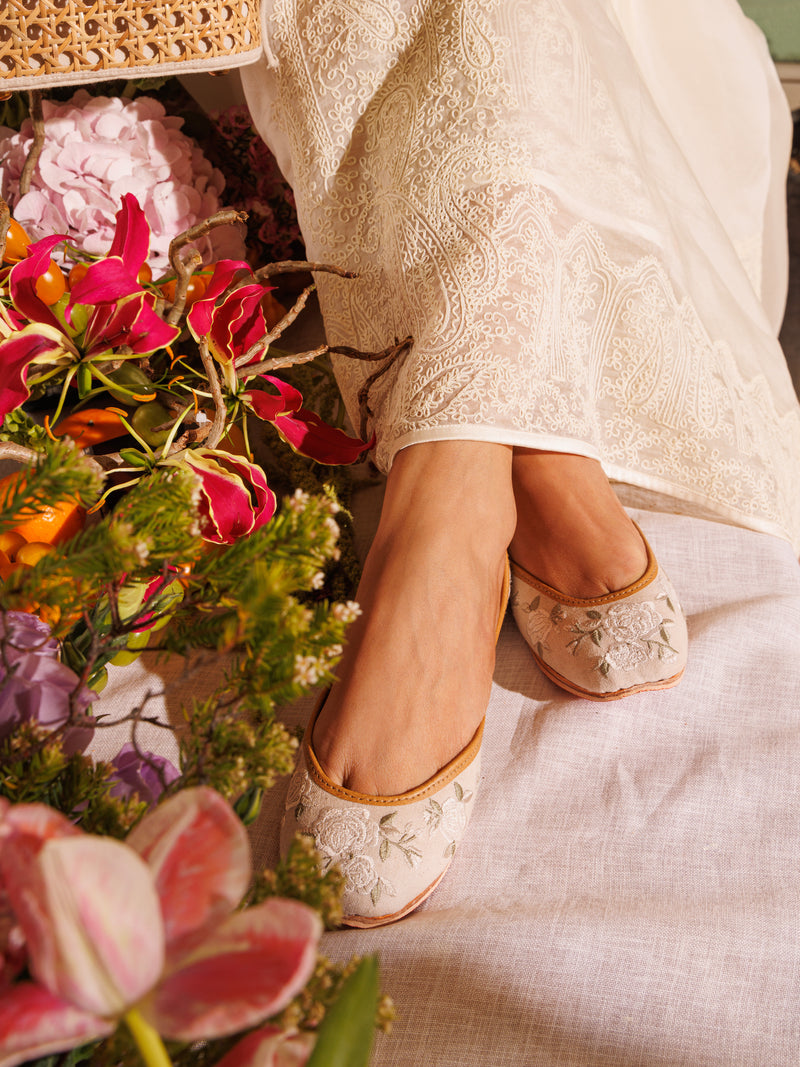 A pastel-hued jutti with light threadwork is ideal for warm-weather brunches and casual strolls.