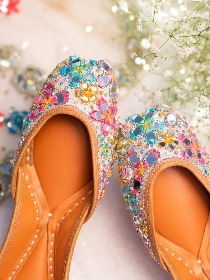 Needledust's bridal juttis offer a palette of colors and patterns, allowing you to choose a pair that resonates with your style and complements your wedding attire. From traditional golds and reds to contemporary pastels and metallics, the options are as diverse as the brides who wear them.