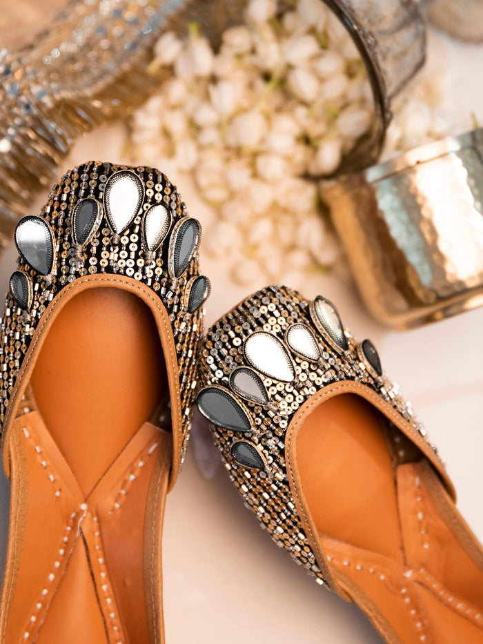 In the realm of bridal fashion, the allure of bridal juttis is timeless. Needledust wedding jutti for bride takes this allure to new heights, crafting bridal juttis that seamlessly blend tradition with modern design aesthetics. These aren't just shoes; they are pieces of art, handcrafted by skilled artisans who breathe life into every stitch, creating footwear that resonates with the heartbeat of tradition and the pulse of modernity.