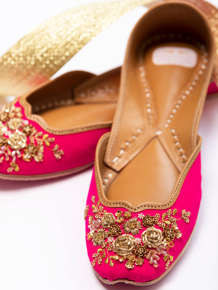 Behind the allure of Needledust's wedding jutti for bride lies a meticulous crafting process. From the initial design sketches to the final stitches, artisans invest their skill and dedication to create footwear that is not merely beautiful but also comfortable. The leather soles, polished to perfection, ensure that every step is a moment of sheer bliss.