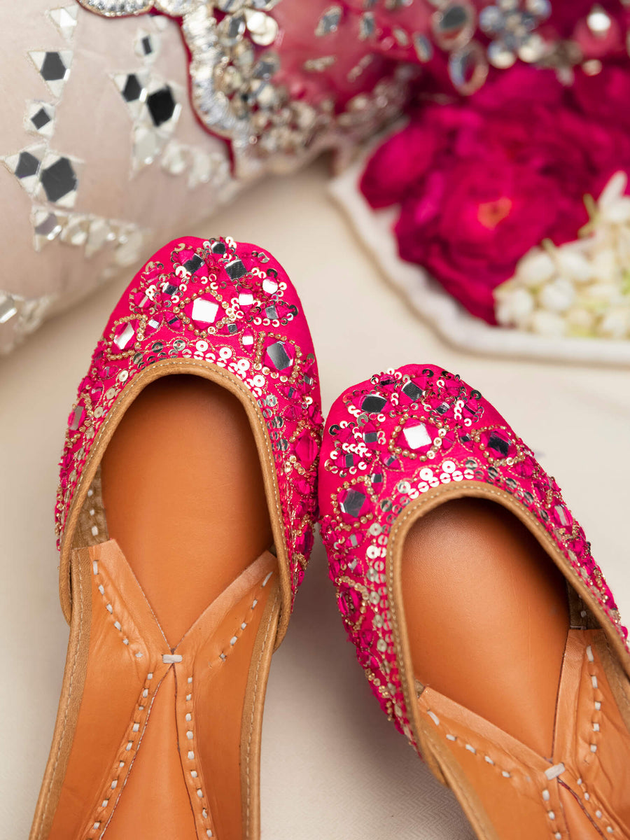 Keeping bridal footwear clean and fresh can be difficult when traveling, but pink juttis are surprisingly low-maintenance. They resist scuffs and stains better than satin heels and can be quickly wiped clean if needed. For beach weddings or humid weather, party wear juttis hold up well without losing their shape or charm. Many are made with durable fabrics, including hand-embroidered pink canvas or leather, making them ideal for multiple outfit changes and event settings. Brides love that pink juttis retain their beauty even after hours of wear and travel. A quick dust-off and they’re ready for the next celebration.