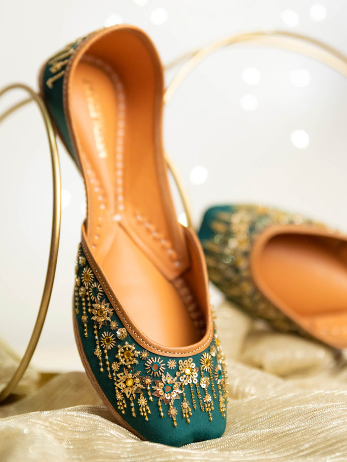 Friendship Day is a time to celebrate the beautiful connections we have with our friends. Immerse yourself in a celestial friendship day celebration with our stunning golden jutti. The intricate gold embroidery, embellished with sequins, dabka, sheesha, and beads, captures the magic of a starry night sky. This vibrant jutti is the perfect accessory to elevate your muted outfits, adding a touch of glamour and radiance. Imagine the joy and laughter as you and your friends gather to exchange these special golden juttis for women. The excitement of trying them on, the compliments shared, and the photos taken together will forever be etched in your hearts. Let Friendship Day be a reminder of the beautiful memories you've created together and a symbol of the friendship that will last a lifetime.