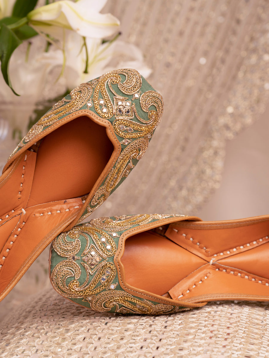 Aarzoo Green Jutti – Nature-Inspired Beauty for Krishna’s Day