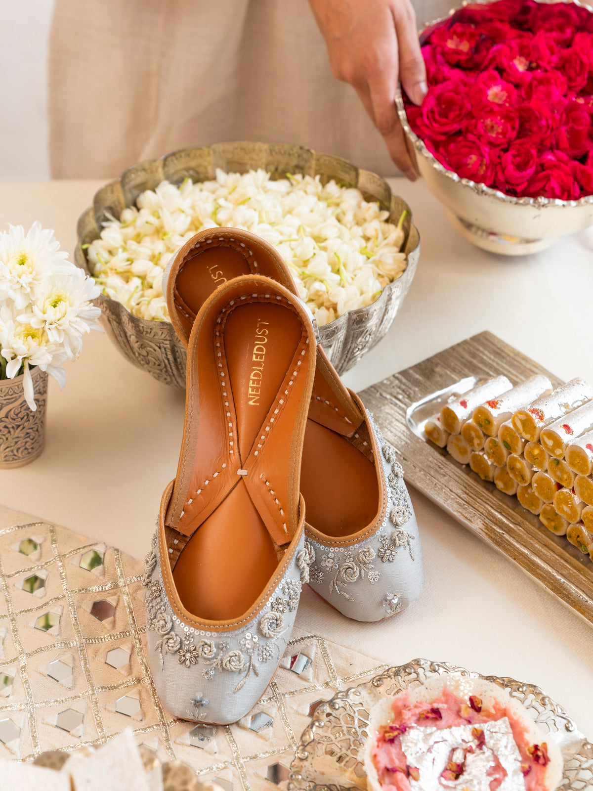 - Choose juttis adorned with floral threadwork or sequins for added softness.