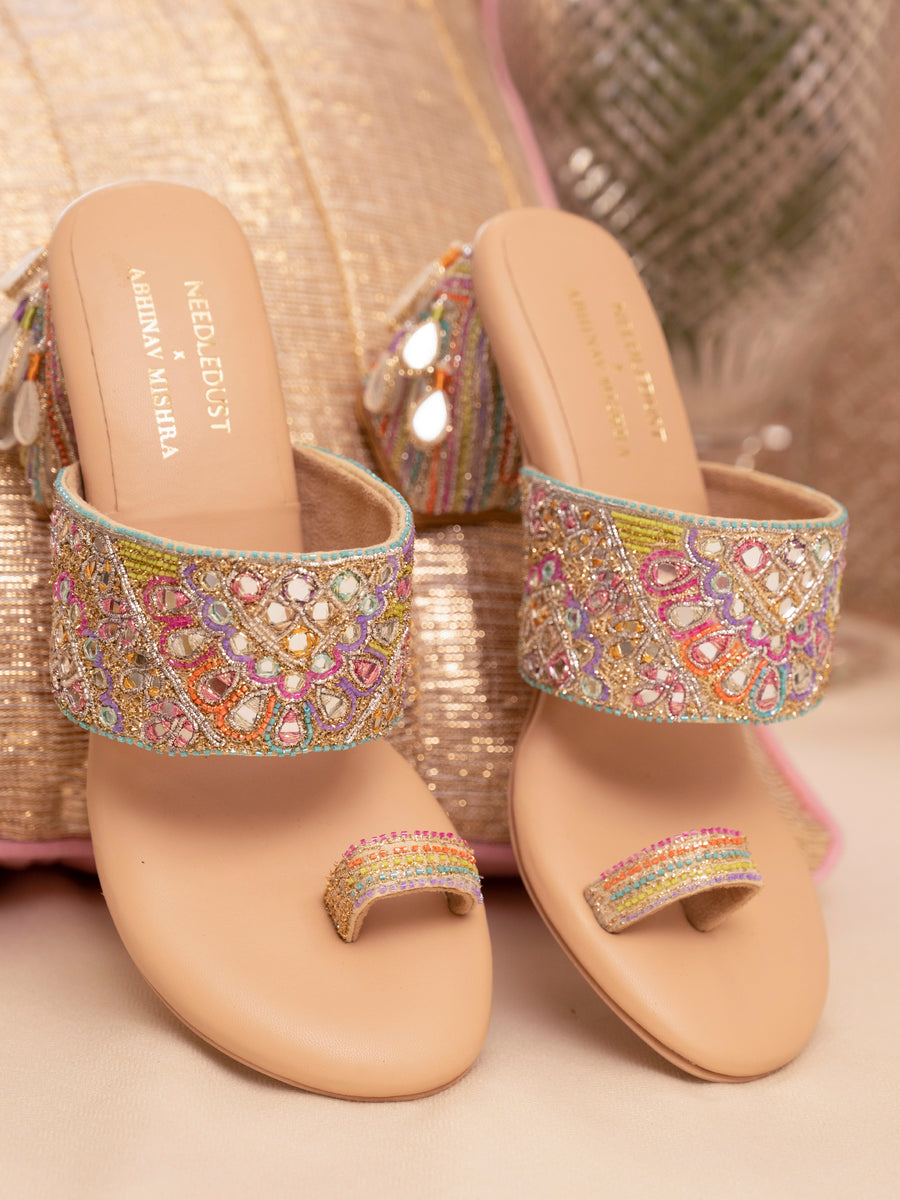 For those who love blending tradition with trend, jutti with heels are a brilliant take on heels for wedding party wear. Offering the elegance of Indian craftsmanship with the practicality of a heel, these pairs are both heritage-rich and comfortable. Ideal for mehndi ceremonies, daytime functions, or intimate wedding gatherings, heeled juttis feature zari work, sequins, or mirror embellishments. Their comfort makes them perfect for events that span hours, while their unique design stands out from typical western heels. Pair them with shararas or anarkalis to complete your festive look.
