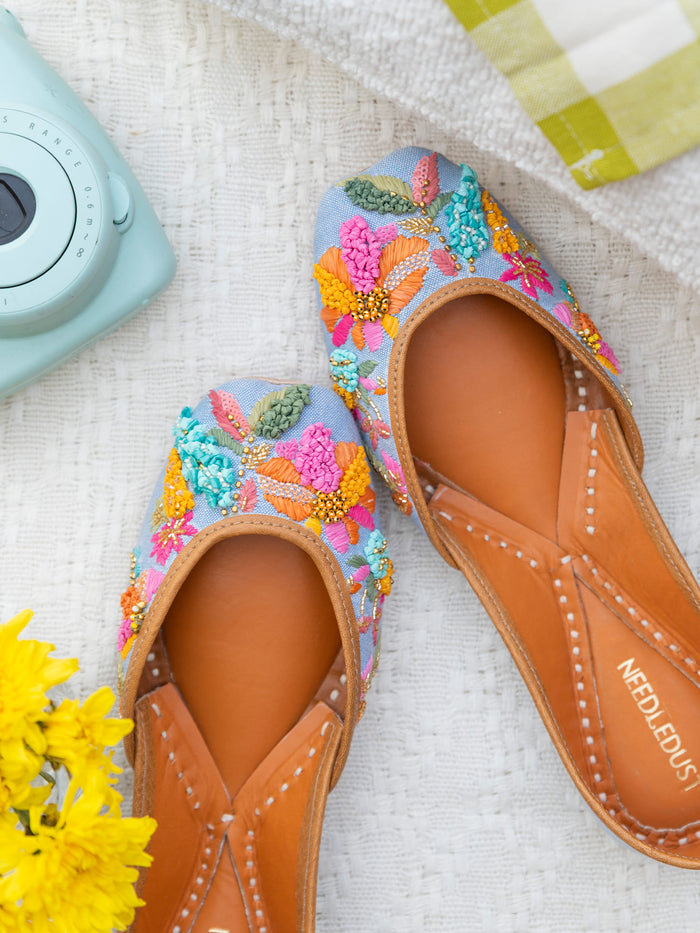 Blue Hand Embroidered Jutti: Minimal Elegance for Summer Soirees